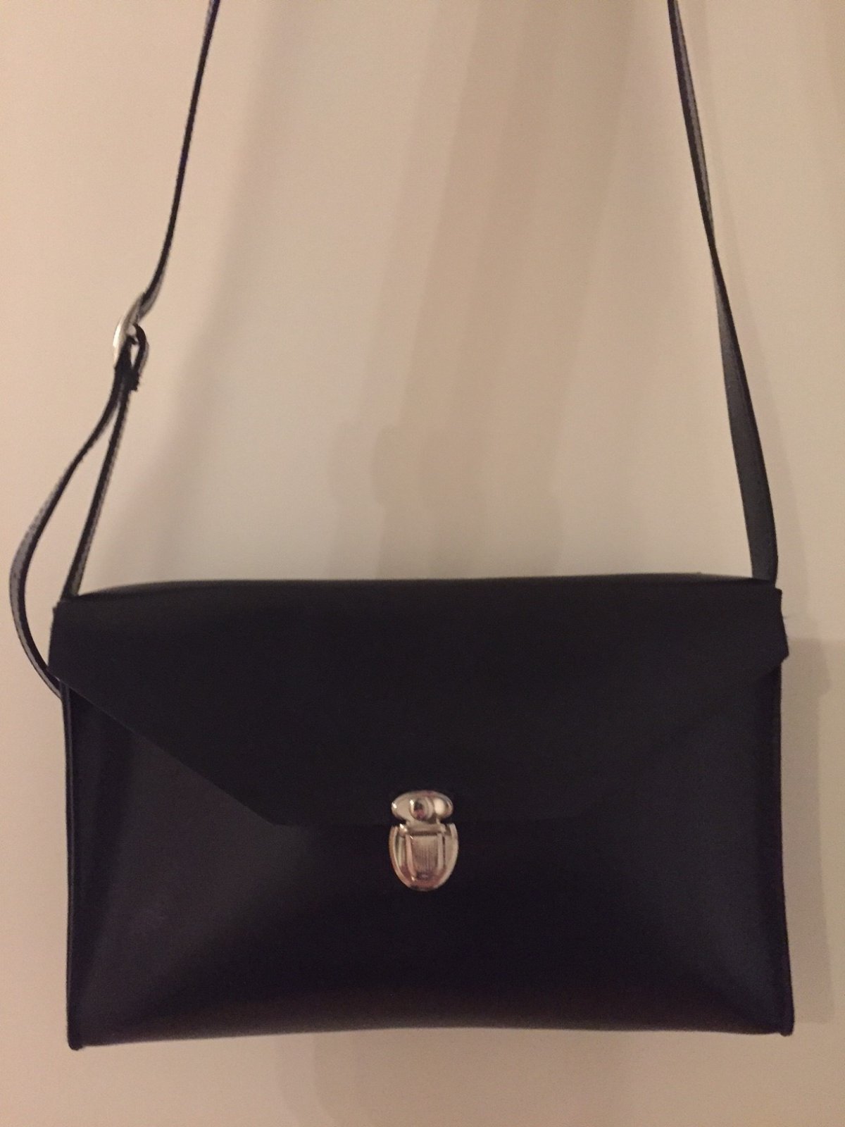 Noteveske plasseres over venstre skulder og går ned på høyre side   Noteveske